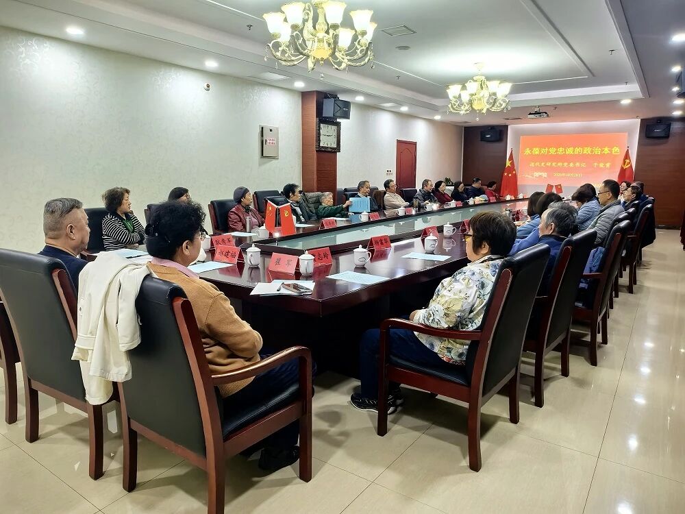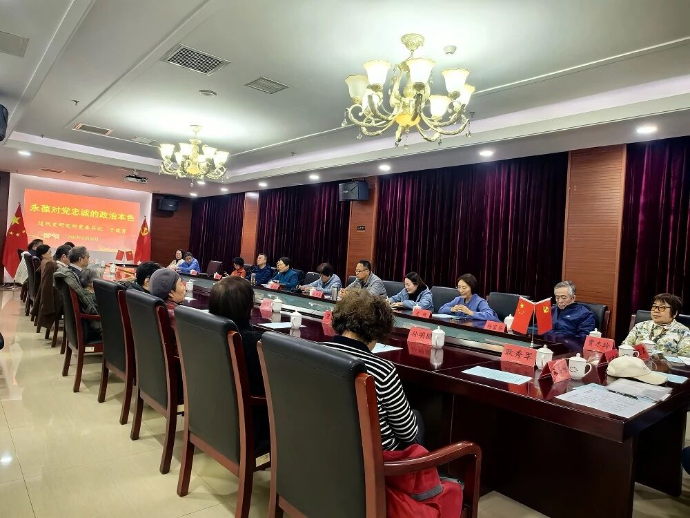 凝心聚魂强信念,银发先锋永向党。为进一步激发退休老同志传承党的优良传统,提高党员纪律意识和规矩意识,10月27日,近代史研究所离退休干部党支部联合离退休人员管理办公室开展了秋季老同志主题党日听党课活动。所党委书记、离退休干部工作领导小组组长于俊霄受邀参加活动,并作“永葆对党忠诚的政治本色”专题报告。党课由离退休干部党支部书记李桂华主持,21位老同志以及纪委书记、副所长曲建君等在职同志6人参加。