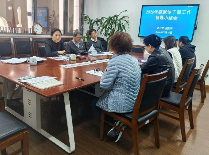 3月10日上午,近代史研究所党委书记、离退休干部工作领导小组组长于俊霄主持召开2026年上半年离退休干部工作领导小组会议,传达院党组部署开展树立和践行正确政绩观学习教育工作,全面回顾我所2025年度工作,规划2026年工作任务。小组成员:副所长金以林,纪委书记、副所长曲建君,副所长高国荣,离退休干部党支部书记李桂华、综合处处长(党办主任)聂永梅、科研处处长周祖文、离退休人员管理办公室负责人崔军参加会议。